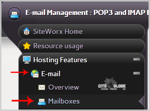 3. Click the "E-mail" menu item and then click on "Mailboxes" option.