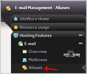 3. Click the "E-mail" menu item and then click on "Aliases" option.